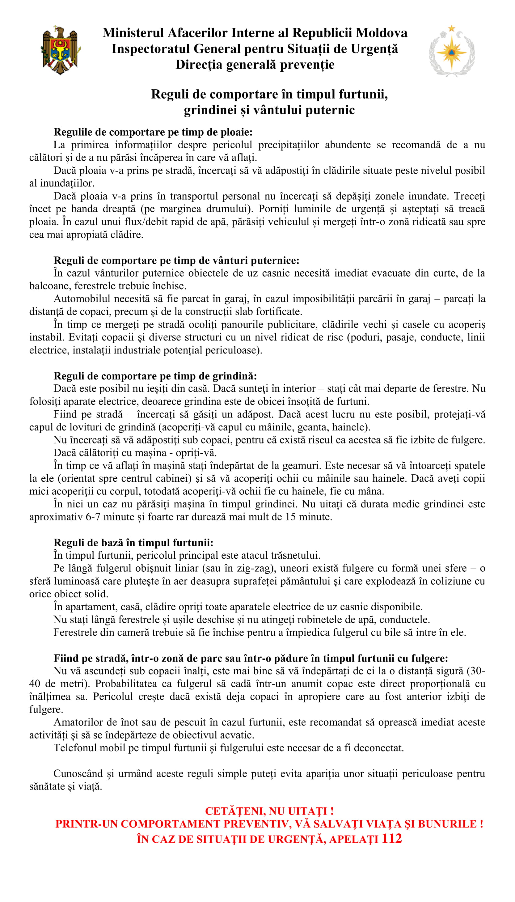 Reguli de comportare în timpul furtunii, grindinei și vântului puternic
